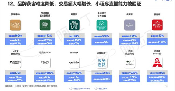 在小程序的生态体系内,直播电商赋能实力最强的就是被有赞投资的爱逛团队。结合有赞本身已有的商户资源,爱逛入驻了品牌商家超3. 1 万多家。