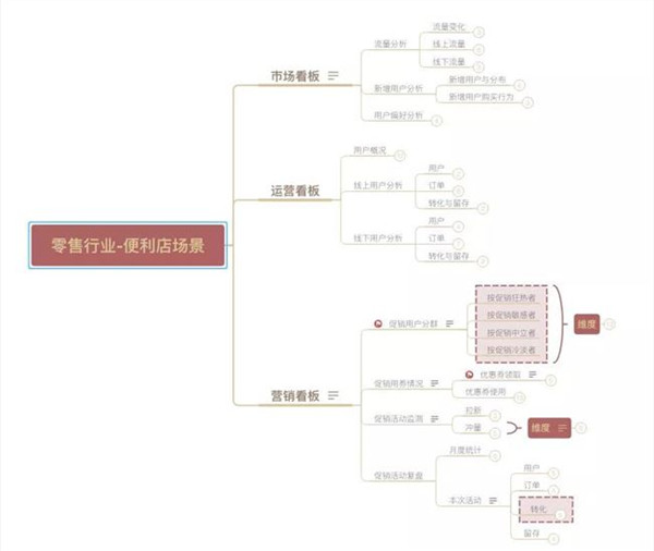 便利店场景完整指标体系搭建,需要满足三大方面的需求,即市场、运营、营销。